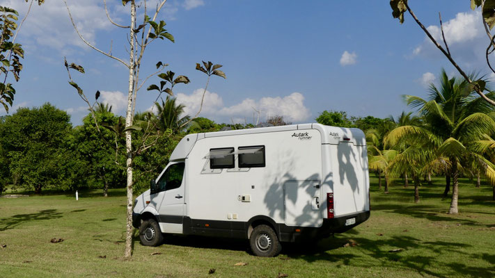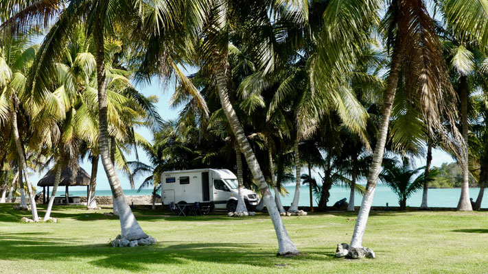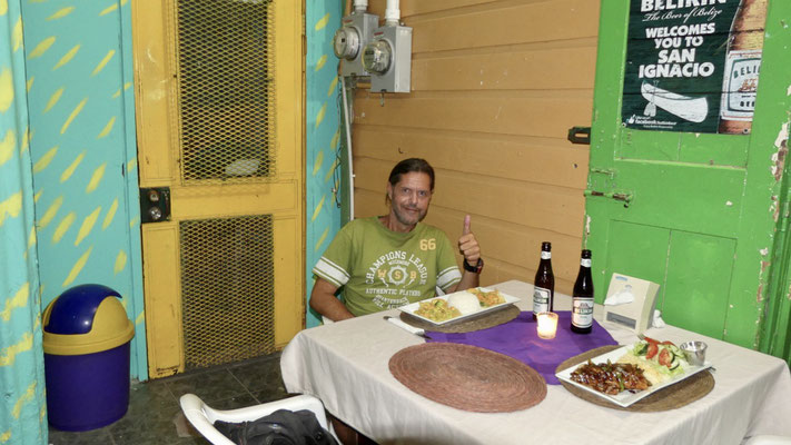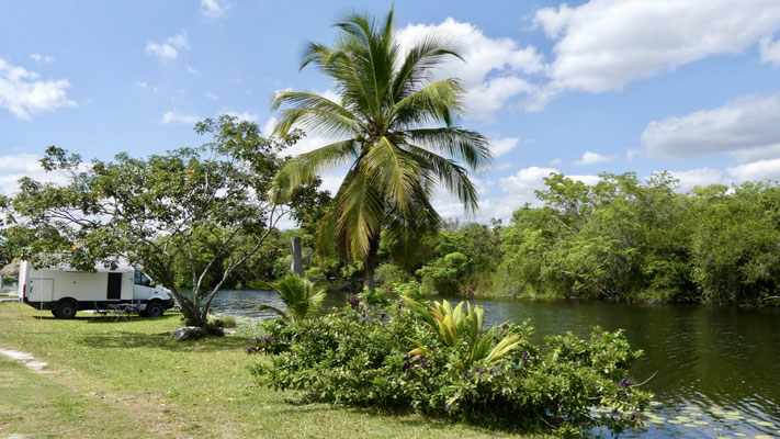 Für unsere letzte Nacht in Belize finden wir einen schönen Stellplatz direkt am Fluß