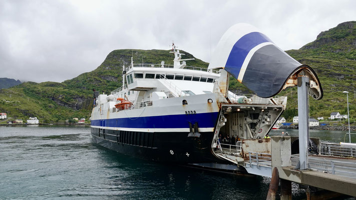 um im Hafen von Moskenes auf der Fähre